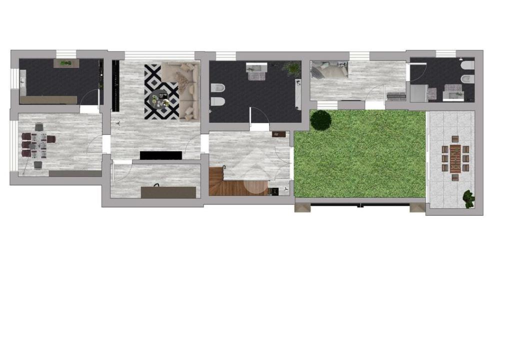La necessaria ristrutturazione permette di rivedere la distribuzione degli spazi interni, adattandoli alle singole necessitĂ .