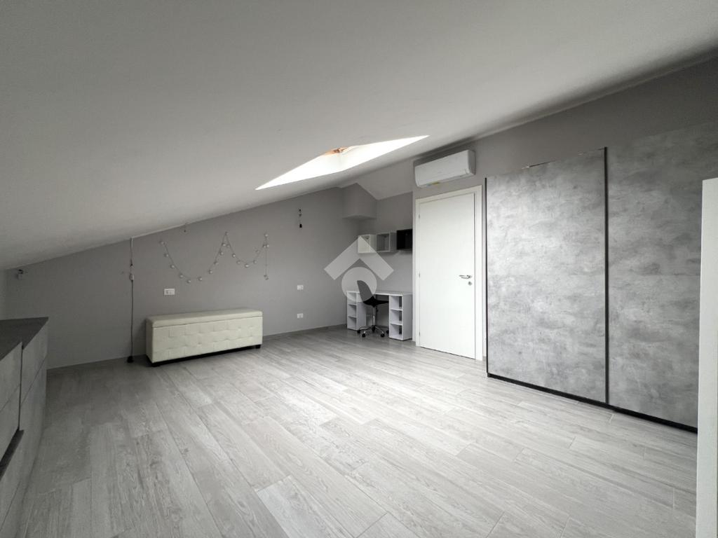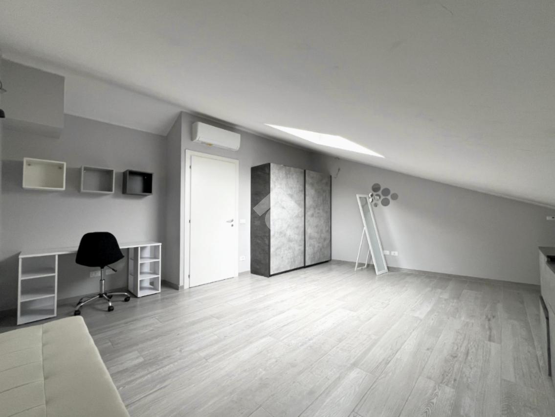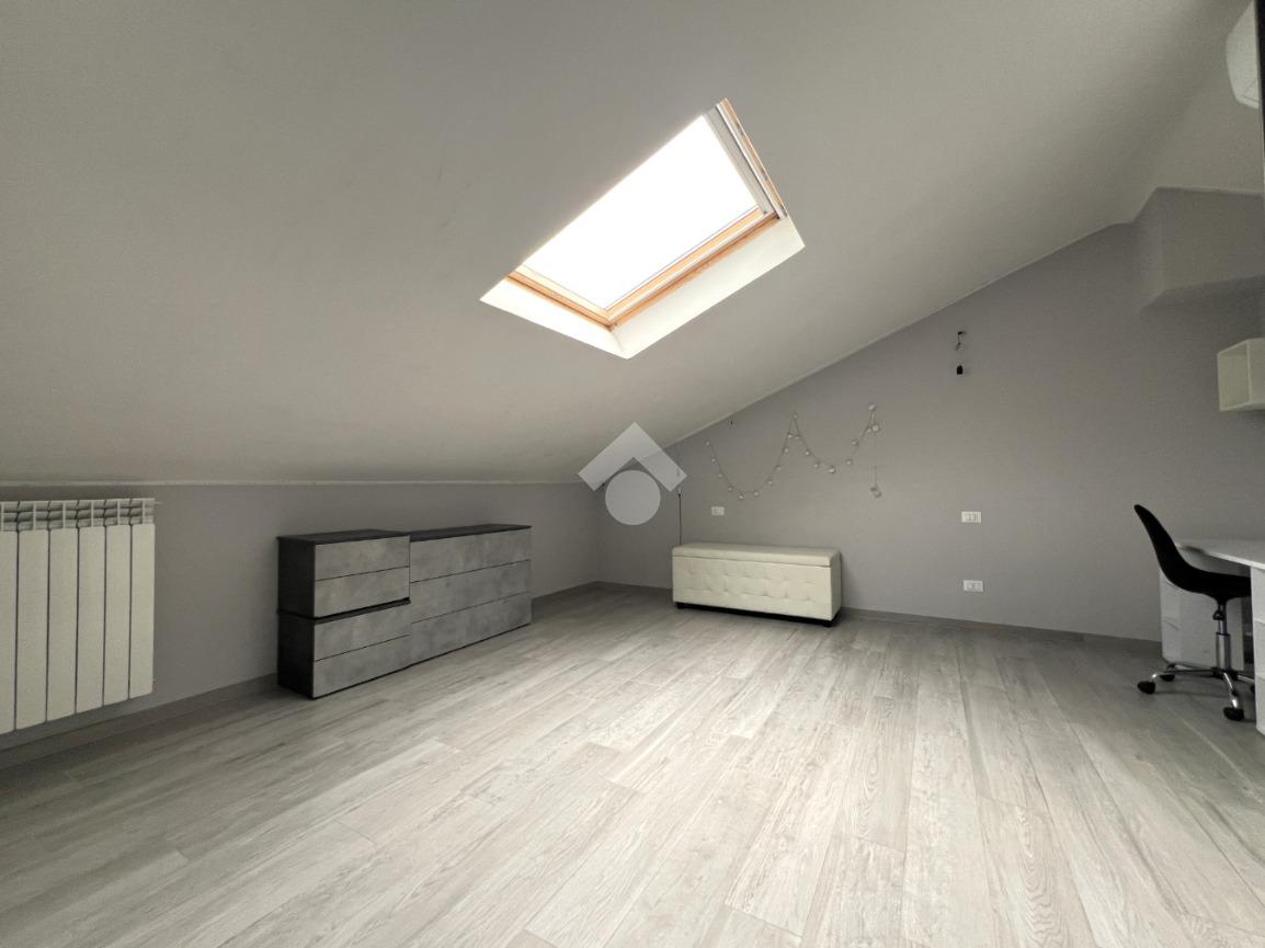 Il piano mansardato, completamente abitabile, ospita una seconda camera matrimoniale, un bagno finestrato con abbaino e vasca e un comodo ripostiglio.