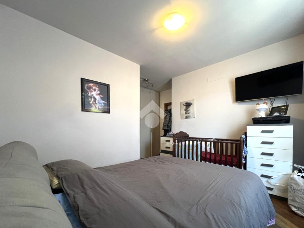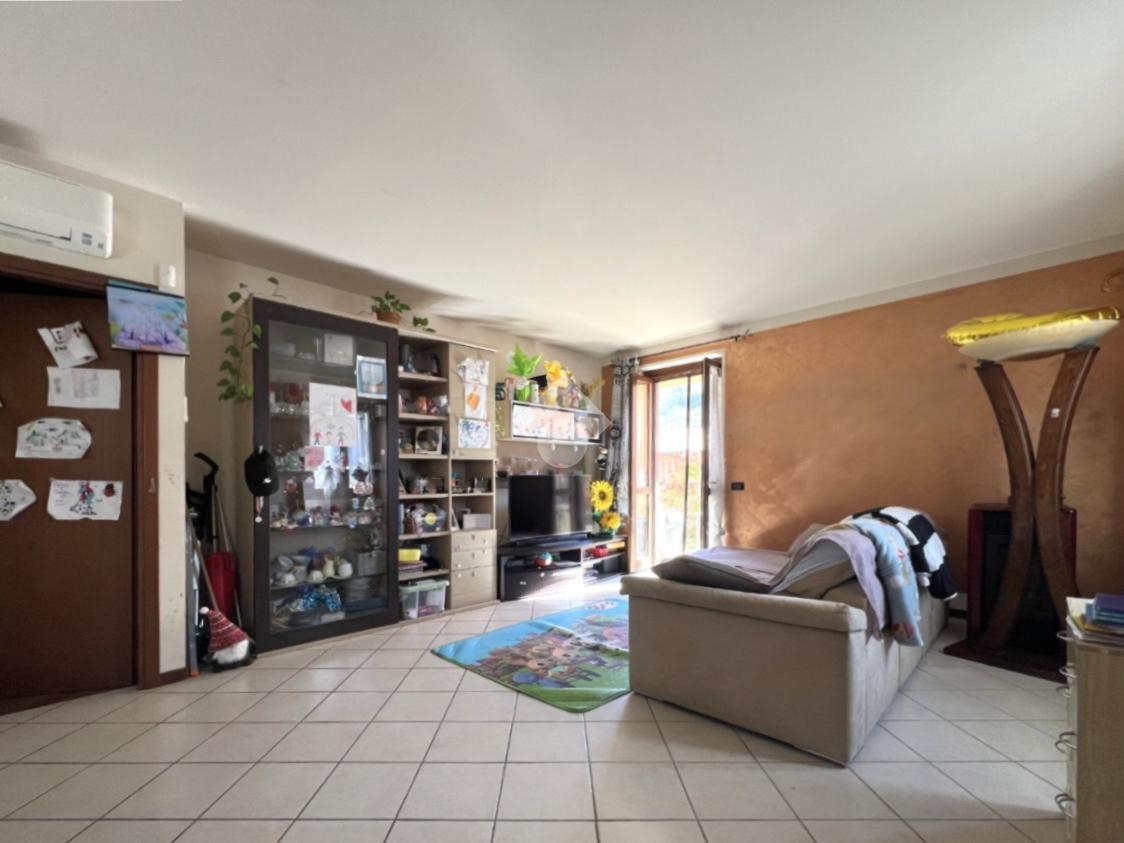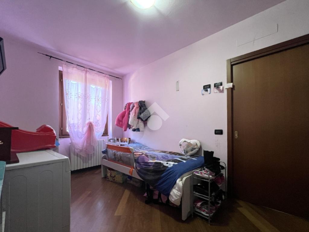 Il soggiorno affaccia sul giardino laterale e ne consente l’accesso diretto; qui è presente un porticato coperto, ideale per pranzi e momenti di relax all’aperto durante la bella stagione, in un contesto di buona privacy. Un corridoio accompagna alla zona notte, rifinita in parquet, composta da una camera matrimoniale con bagno privato finestrato dotato di doccia, una cameretta singola e un secondo bagno, anch’esso finestrato e completo di vasca.